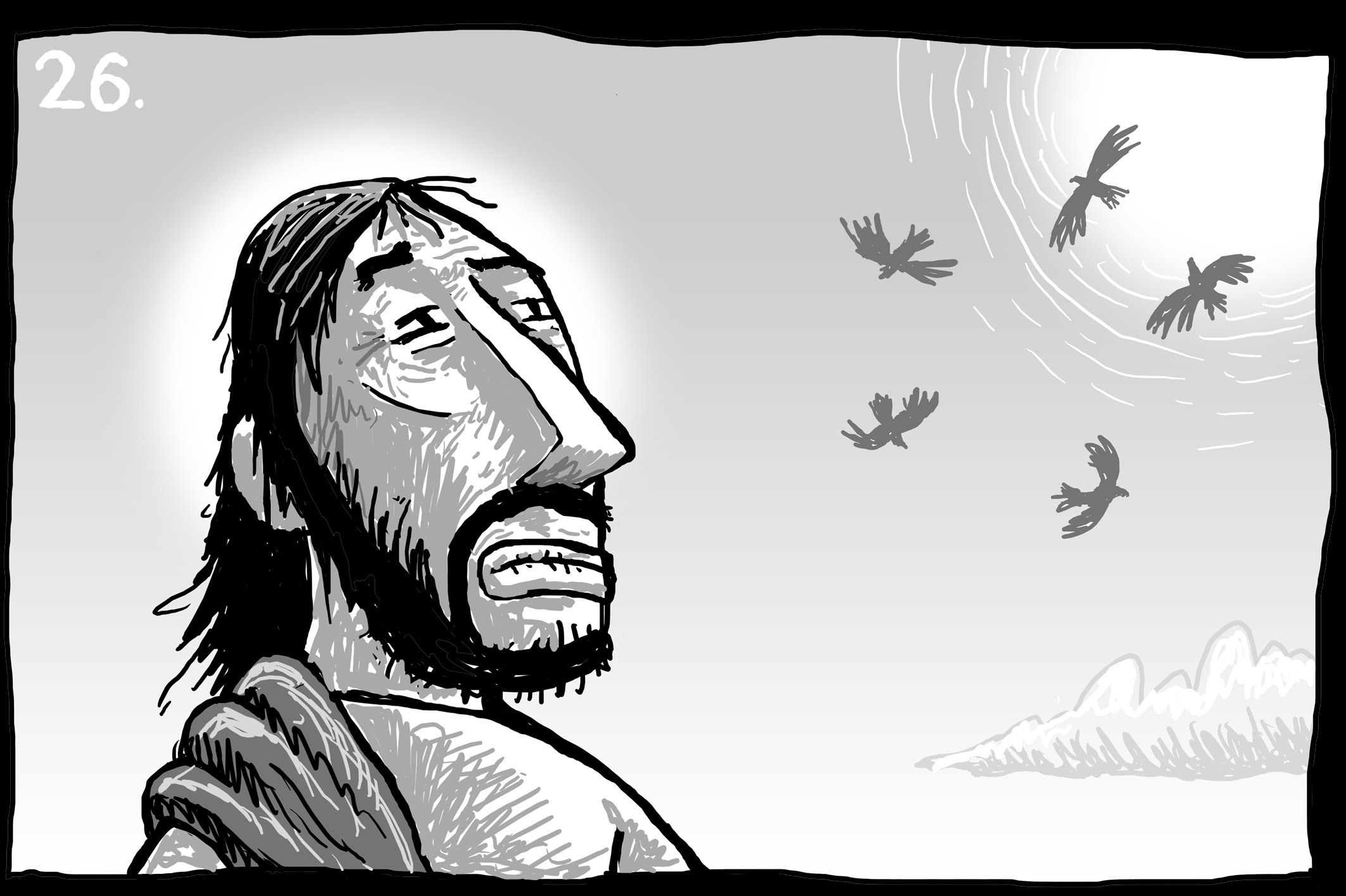 Simon Smith, an illustrator from the UK, asked that question and created a series of illustrations that help us to reflect on what it must have been like for Christ to have spent forty days in the wilderness—forty days to think, forty days to attend to what was happening within and outside of himself, forty days to prepare for his ministry.