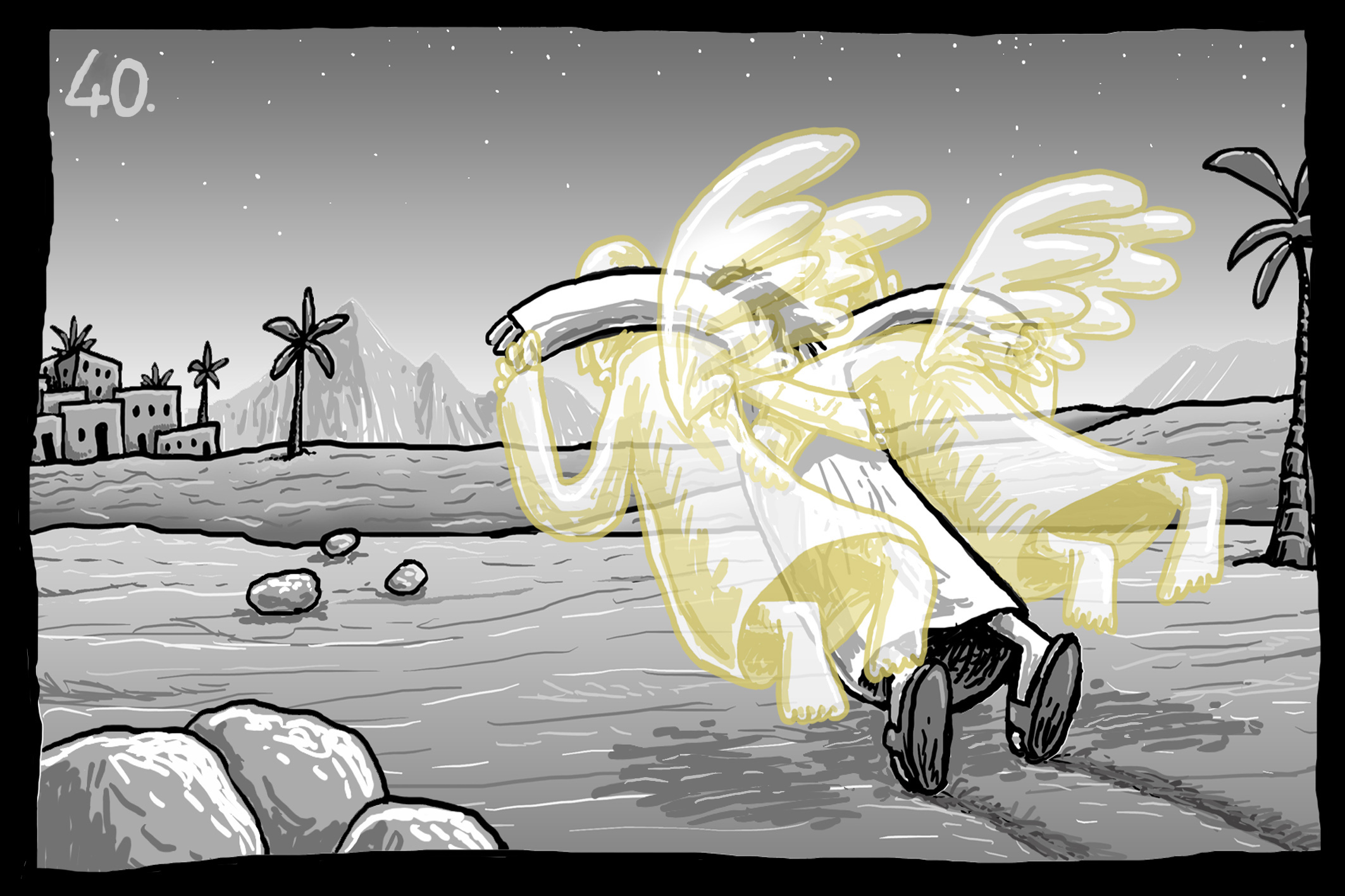 Smith has generously gifted these illustrations to the church; please honor that gift by including the following copyright information: —Simon Smith, ”40” © 2026 Simon Smith, CC BY-NC-ND 4.0. Used by permission.